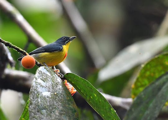 Crimson-breasted Flowerpecker (Prionochilus percussus) [Male] is a very colorful, fast moving and active bird among hundred species of birds can be found in Sungai Congkak Recreational Forest, Selangor, Malaysia. The bird can be found at the forest edges in the recreational forest.